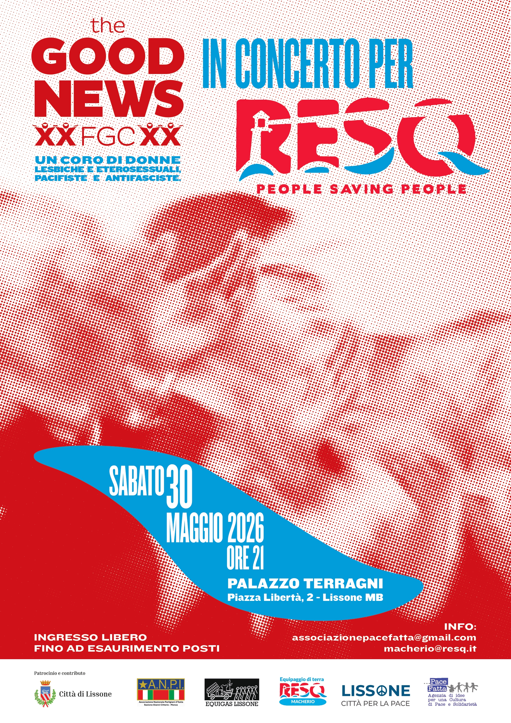 L'Equipaggio di terra di Macherio, insieme ad altre associazioni del territorio, organizza una serata musicale a sostegno di ResQ, con un concerto del The Good News Female Gospel Choir: un coro di donne lesbiche, eterosessuali e bisessuali che canta nei contesti più diversi, dalle periferie ai teatri, per i diritti civili, per l’eliminazione della violenza contro le donne e contro il razzismo e ogni tipo di discriminazione nei confronti delle minoranze, con una particolare attenzione per i diritti delle persone LGBTQIA+.
